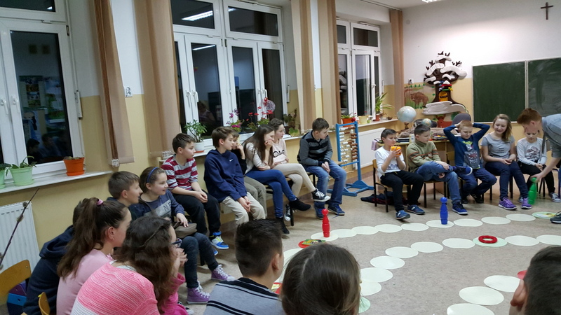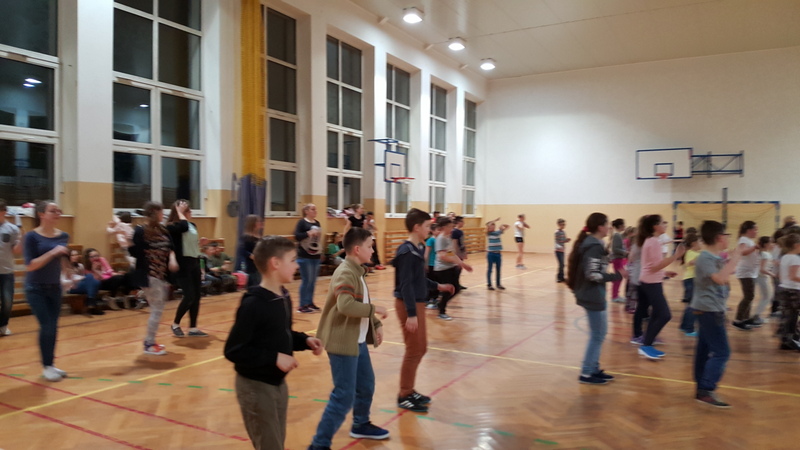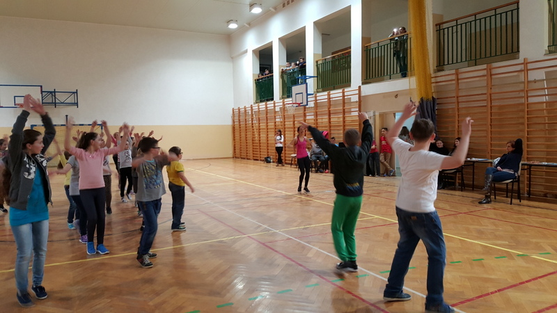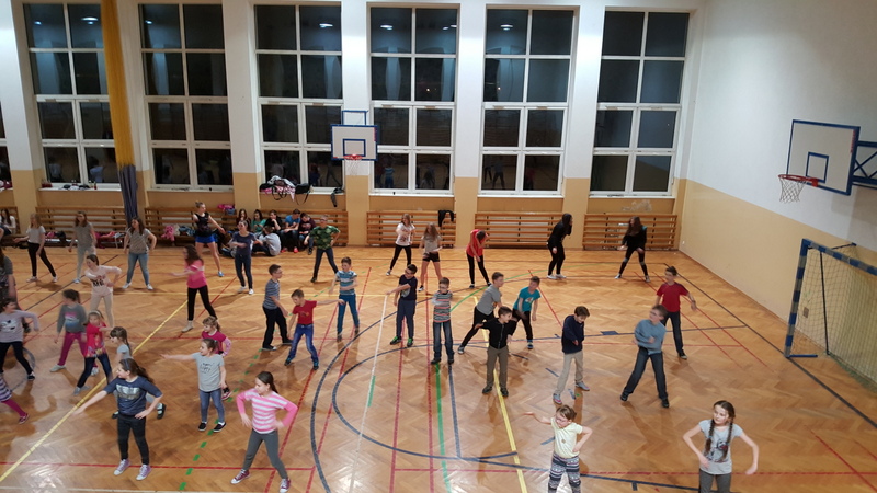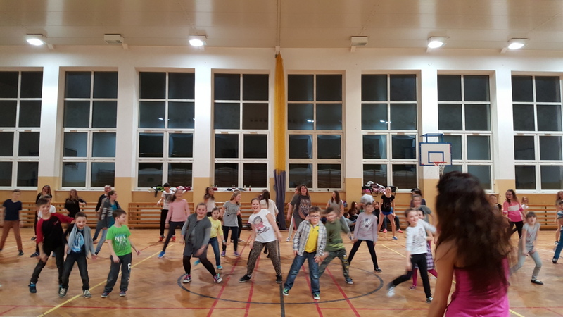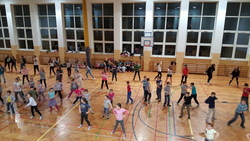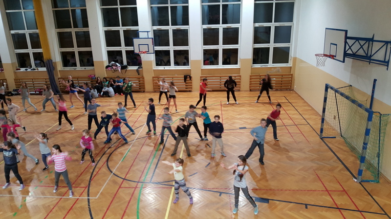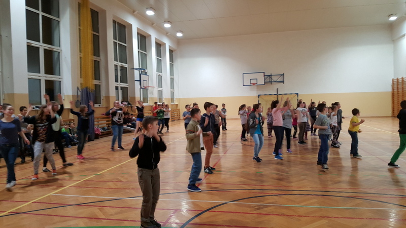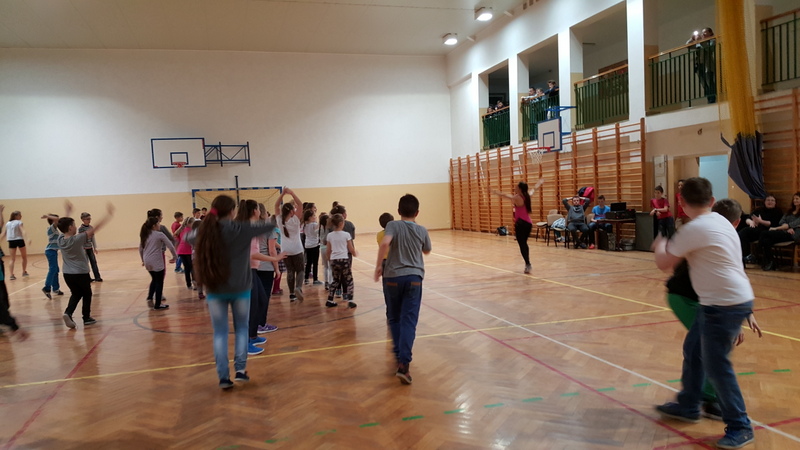Pani Monika Majka uczyła nas kroków zumby i wszyscy razem gibko wyginaliśmy się w takt muzyki.