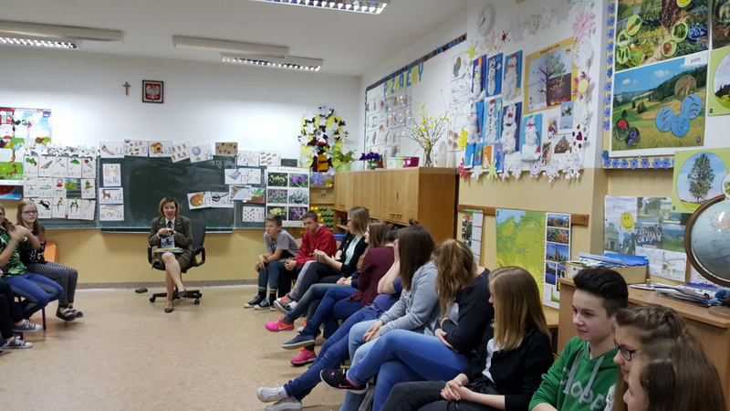 Najpierw mogliśmy wysłuchać wspaniałej interpretacji bajki „Guzik w tarapatach” w wykonaniu samej autorki pani Małgorzaty Kaczorowskiej. Z zapartym tchem śledziliśmy przygodę koziołka. Za sprawą Guzika dowiedzieliśmy się, dlaczego tak ważne jest dbanie o środowisko. Czekamy na następną książkę, która ukaże kolejne perypetie tego sympatycznego mieszkańca lasu. Pani Małgosia pracuje w Nadleśnictwie Dynów i zajmuję się propagowaniem edukacji leśnej. Liczymy, że teraz będzie często nas odwiedzać.