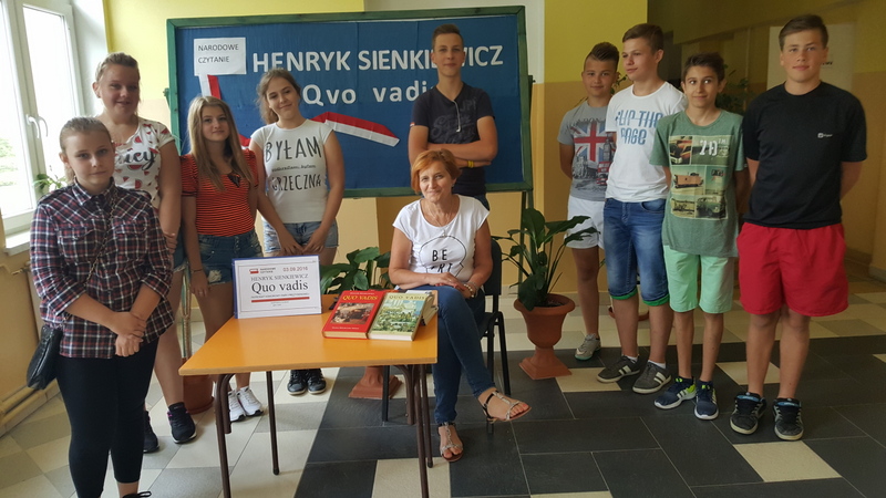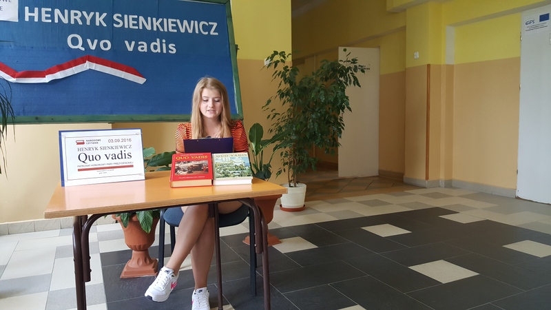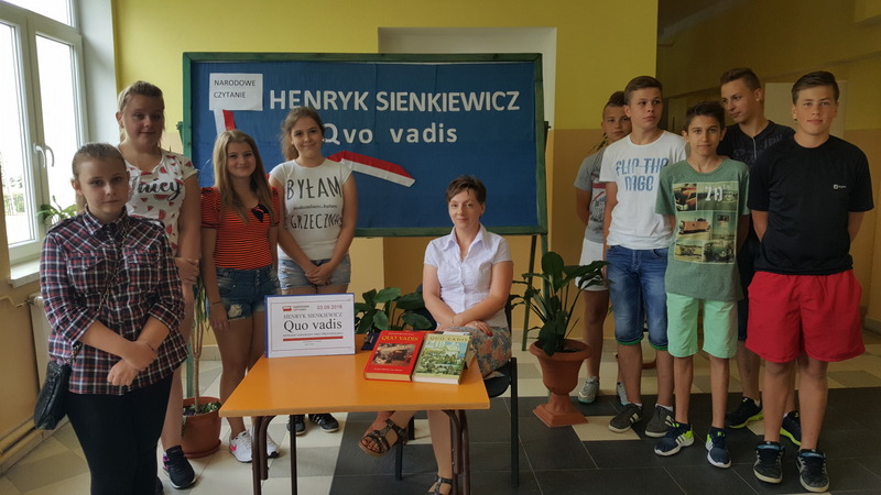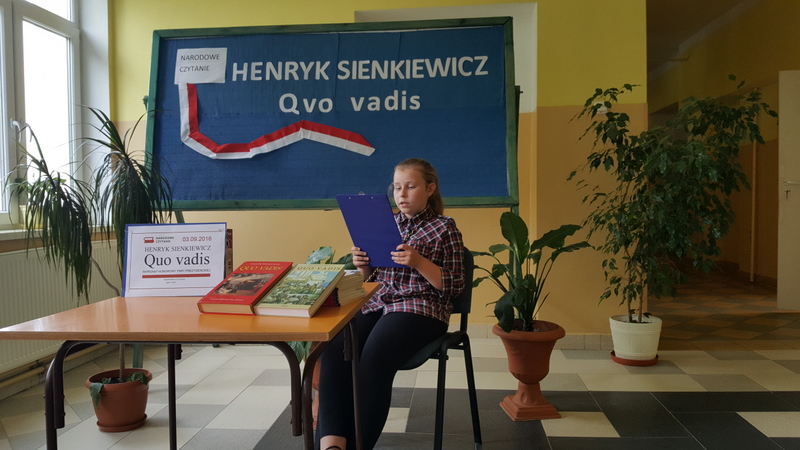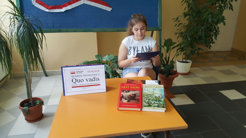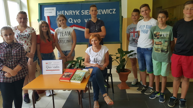 Dnia 3 września 2016 r. o godzinie 14.00 uczniowie klas gimnazjalnych naszej szkoły odpowiedzieli na apel Pana Prezydenta RP Andrzeja Dudy i wzięli udział w Narodowym Czytaniu. Zebrali się na korytarzu, by tu wsłuchać się w prozę H. Sienkiewicza.