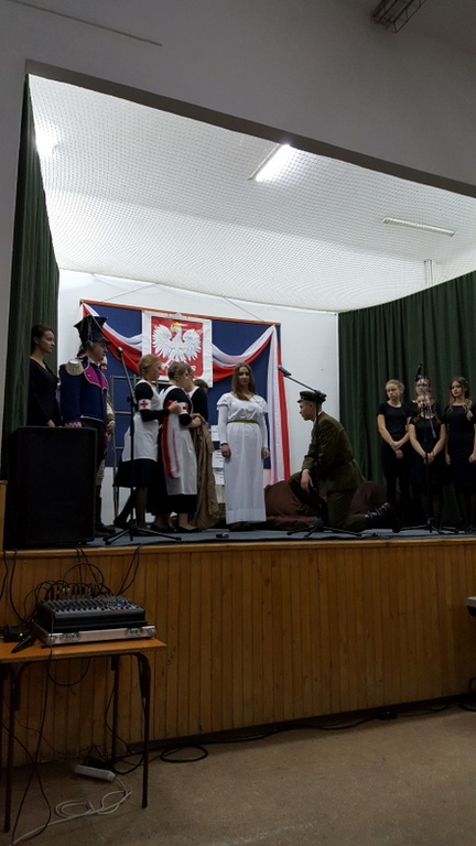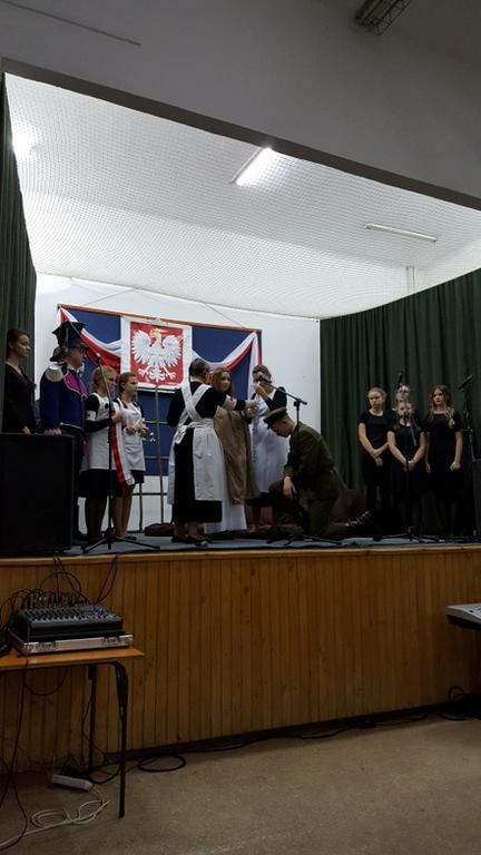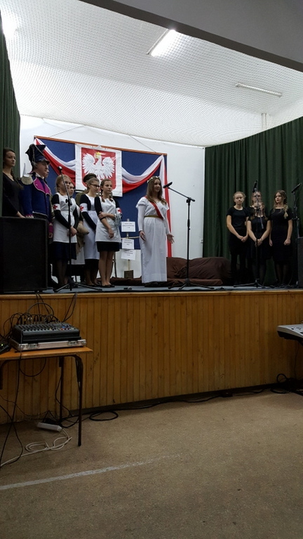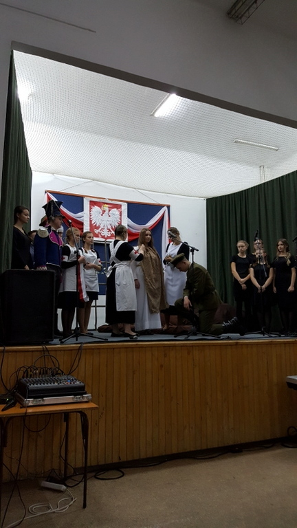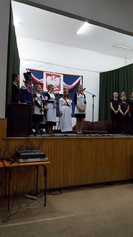 Z inicjatywy p. M. Gładysz, radnego gminnego p. J. Stochmala oraz wydatnej pomocy pani sołtys M. Pałac dnia 19.11.2017 r. w Domu Ludowym w Harcie Górnej odbyło się widowisko patriotyczne przygotowane przez uczniów klasy III gimnazjum oraz zespół wokalny naszej szkoły. Spektakl został bardzo ciepło przyjęty przez widownię. Wyrazem uznania dla młodych artystów były gromkie brawa oraz hojne dobrowolne datki. Serdecznie dziękujemy wszystkim, którzy pomogli w przygotowaniu przedstawienia oraz tym, którzy finansowo docenili wysiłek młodzieży. Dziękujemy.