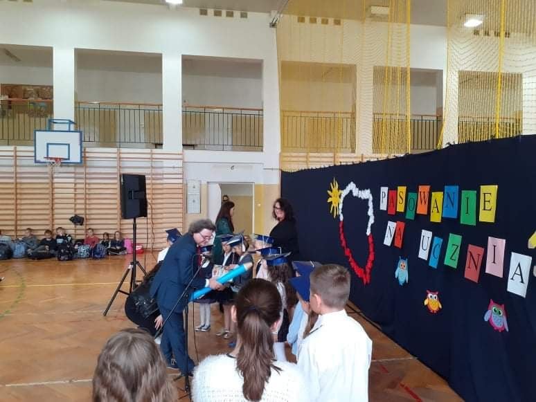 6 października 2021r. odbyło się pasowanie na ucznia. Uczniowie pod kierunkiem wychowawcy przedstawili krótki program artystyczny. Pierwszaki składając uroczyste ślubowanie, dołączyły oficjalnie do grona uczniów szkoły. Po ślubowaniu każdy pierwszoklasista został pasowany symbolicznym ołówkiem przez Pana Dyrektora Krzysztofa Kędzierskiego. Zakończeniem uroczystości było wręczenie uczniom pamiątkowych dyplomów i książeczek.
