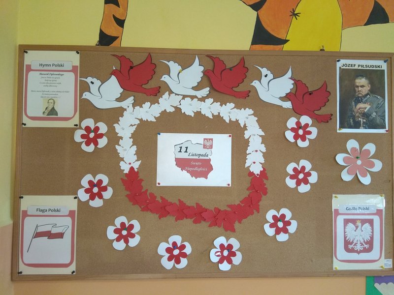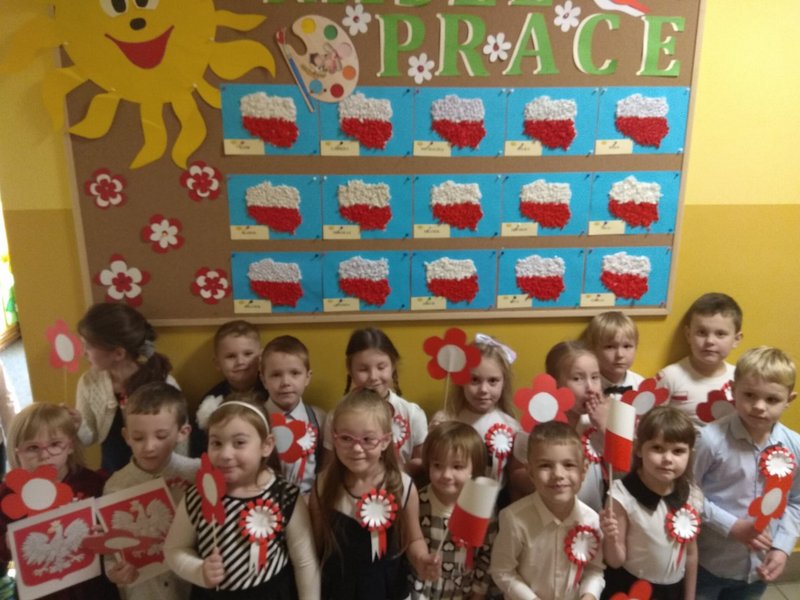 10 listopada br. przedszkolaki uczciły 103 rocznicę odzyskania niepodległości. Odświętnie ubrane z kotylionami na piersiach i własnoręcznie zrobionymi kwiatami w barwach narodowych śpiewały hymn Polski, piosenki patriotyczne i recytowały wiersze. Był to radosny dzień w naszym przedszkolu i mamy nadzieję, że na długo zapadnie w pamięci naszych „Małych Polaków"