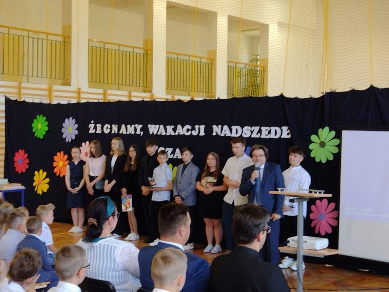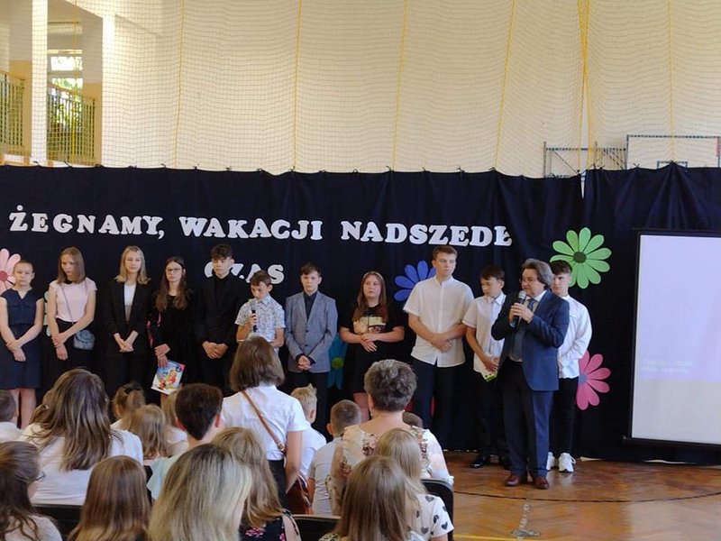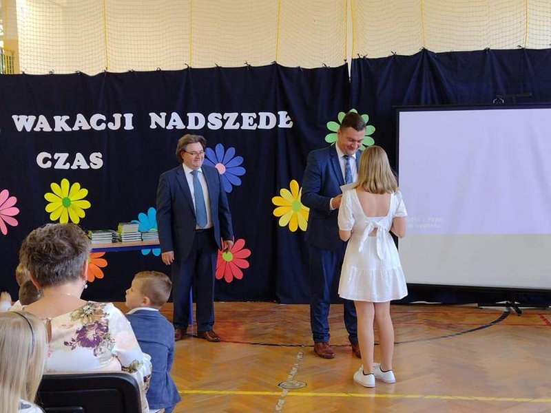 24 czerwca br. uroczyście zakończyliśmy rok szkolny 2021/2022. W akademii uczestniczył Wójt Gminy Dynów Wojciech Piech. Najlepsi uczniowie otrzymali nagrody od Pana Wójta, Radnego Powiatu Rzeszowskiego Pana Aleksandra Stochmala oraz Rady Rodziców. Podczas uroczystości Pan Dyrektor pogratulował wszystkim uczniom, którzy swoją pracowitością i systematycznością osiągnęli sukcesy w nauce, podziękował za wytrwałość w zdobywaniu nowych umiejętności, w poznawaniu i rozwijaniu swoich zdolności i talentów, godne reprezentowanie szkoły na konkursach wewnętrznych i zewnętrznych oraz troskę o dobre imię szkoły. Uczniowie zostali nagrodzeni dyplomami i książkami za celujące i bardzo dobre wyniki w nauce oraz wzorowe zachowanie. Najpilniejszym uczniom dyrektor wręczył świadectwa z wyróżnieniem. Nauczycielom i pracownikom obsługi podziękował za życzliwość, podejmowane inicjatywy, trud wychowania i nauczania, rzetelną pracę oraz dbałość o bezpieczeństwo uczniów.