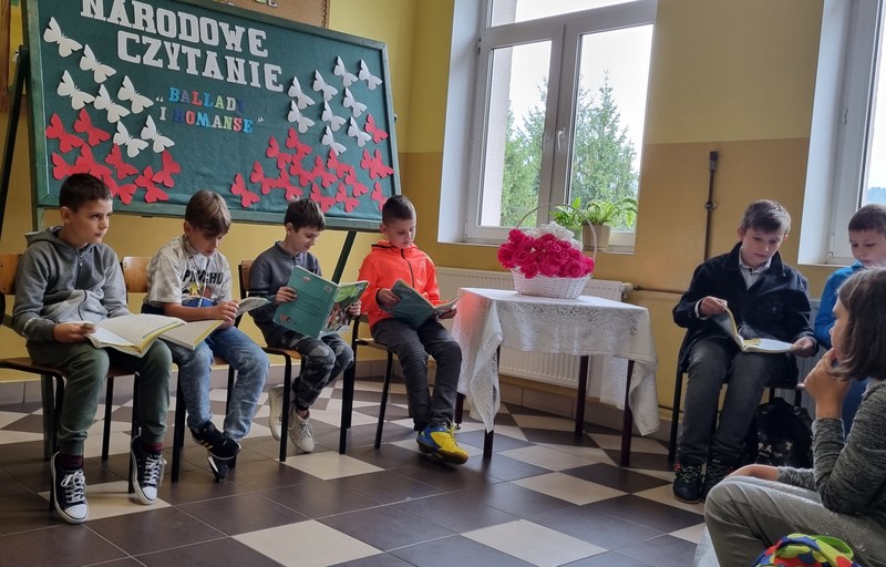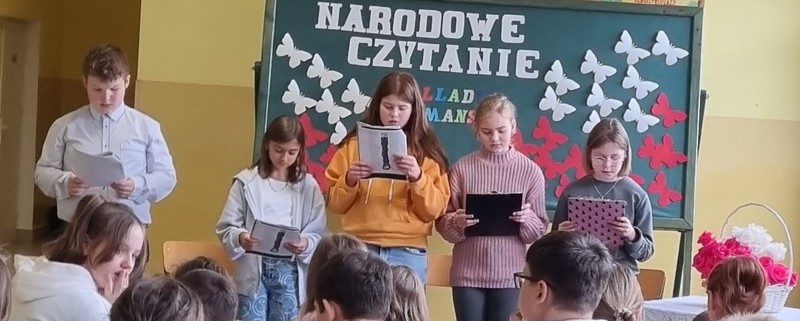 Po raz kolejny uczniowie naszej szkoły odpowiedzieli na apel Pana Prezydenta i wzięli udział w Narodowym Czytaniu. Zebrali się na korytarzu, by tu wysłuchać utworów z tomiku poezji A. Mickiewicza pt. „Ballady i romanse”