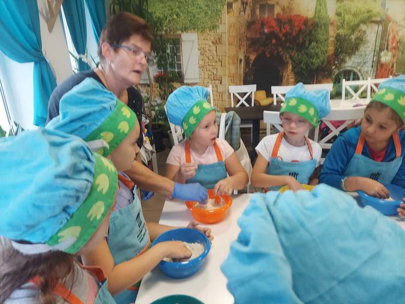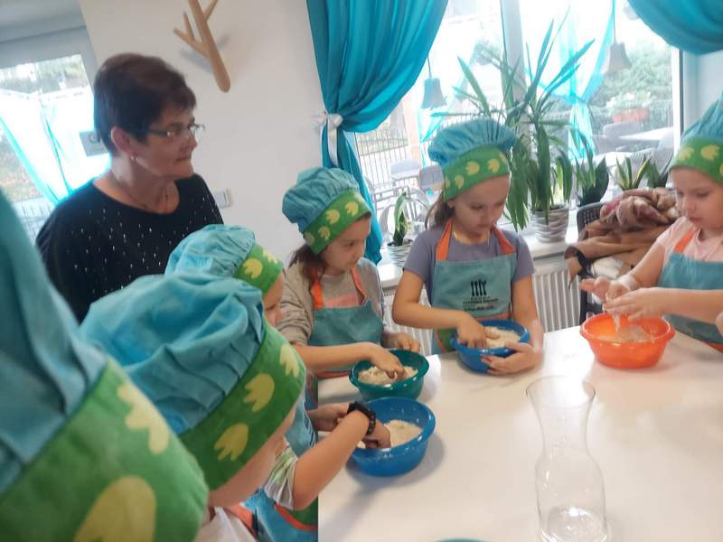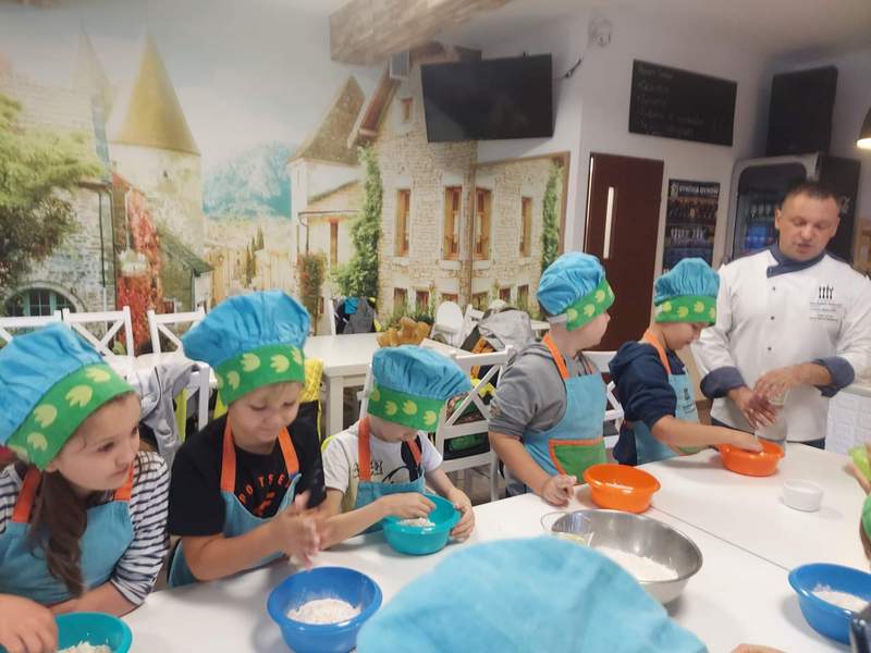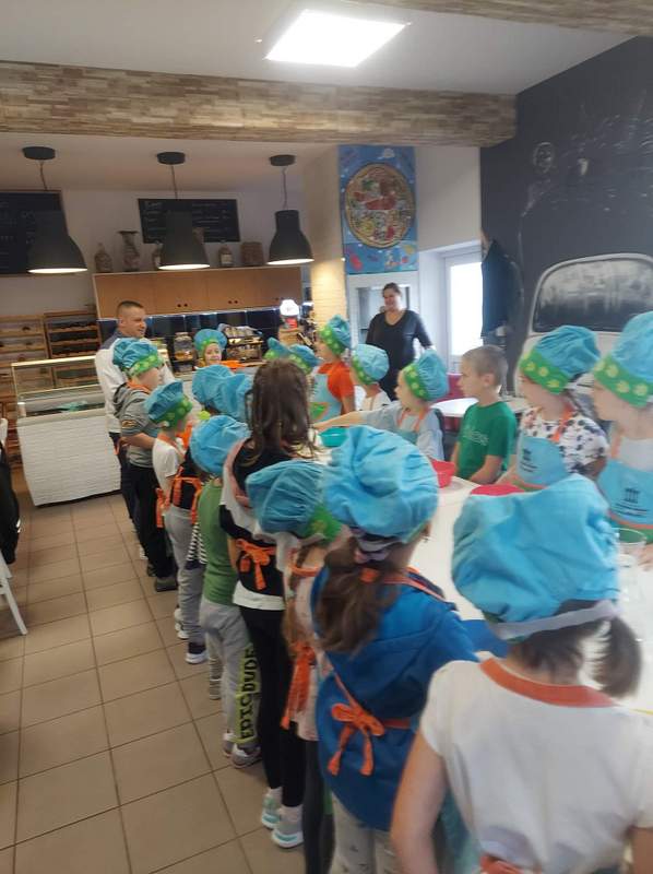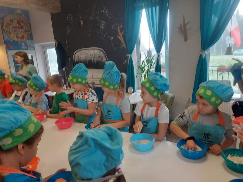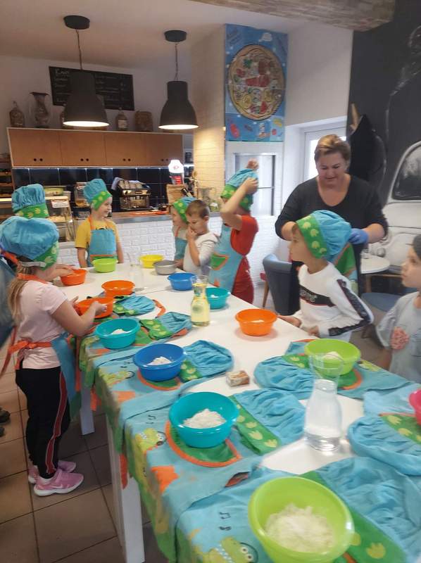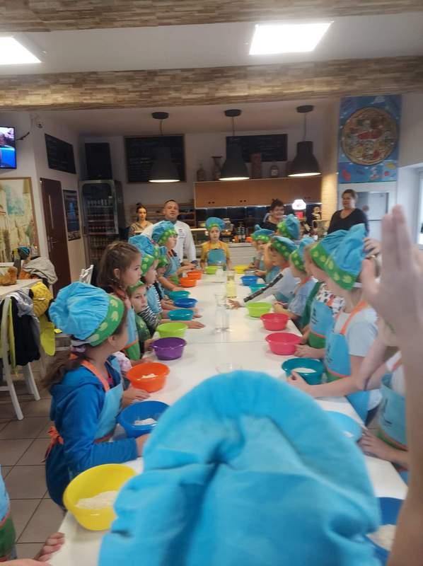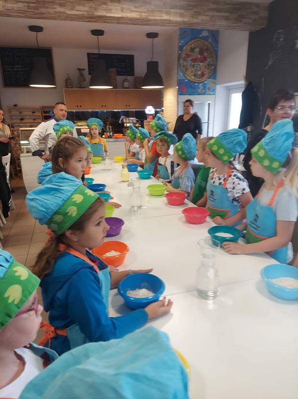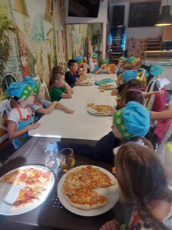 Uczniowie klasy I i II wzięli udział w warsztatach kulinarnych przeprowadzoych w pizzerii La Famiglia w Dynowie. W ich trakcie dzieci dowiedziały się z jakich składników wykonuje się pizzę oraz same mogły przygotować ciasto do wypieku. Opanowanie nieskomplikowanego przepisu na pizzę, łączenie składników – to wszystko sprawiło, iż uczniowie z entuzjazmem eksperymentowali i doskonale się bawili.