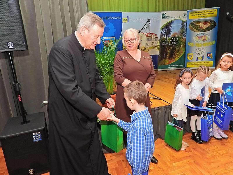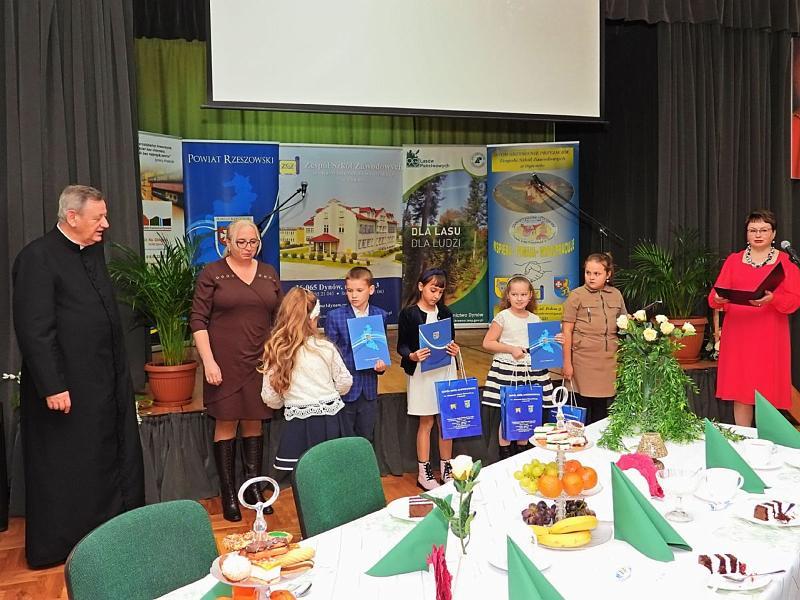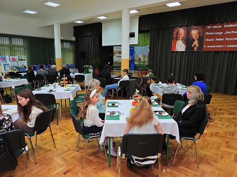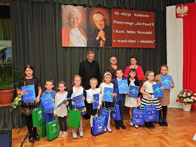 17 listopada br. w auli Zespołu Szkół Zawodowych im. Kard. Stefana Wyszyńskiego w Dynowie obyła się przepiękna gala- rozdanie nagród laureatom III edycji konkursu plastycznego JAN PAWEŁ II i KARDYNAŁ WYSZYŃSKI W OCZACH DZIECI I MŁODZIEŻY. Został on przeprowadzony w trzech grupach wiekowych. W konkursie wzięło udział 128 uczniów z 15 szkół z Dekanatu Dynowskiego. Wykonali oni prace plastyczne nawiązujące do hasła konkursu. Uroczystość uświetniła wzruszająca akademia przygotowana przez gospodarzy. Galę konkursową zakończył szkolny zespół muzyczny ulubioną pieśnią św. Jana Pawła II „Barka”, w śpiew której włączyli się wszyscy uczestnicy spotkania.