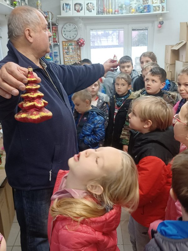 07.12.2022 r. uczniowie naszej szkoły (kl.I- III) wraz z wychowawcami, wybrali się do fabryki bombek w Rzeszowie. Zapoznali się z procesem wytwarzania bombek. Najpierw zobaczyli z jakiego materiału i jak się wykonuje bombki, a następne zobaczyli czym i w jaki sposób je się dekoruje.