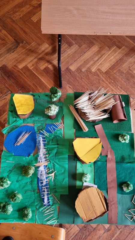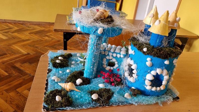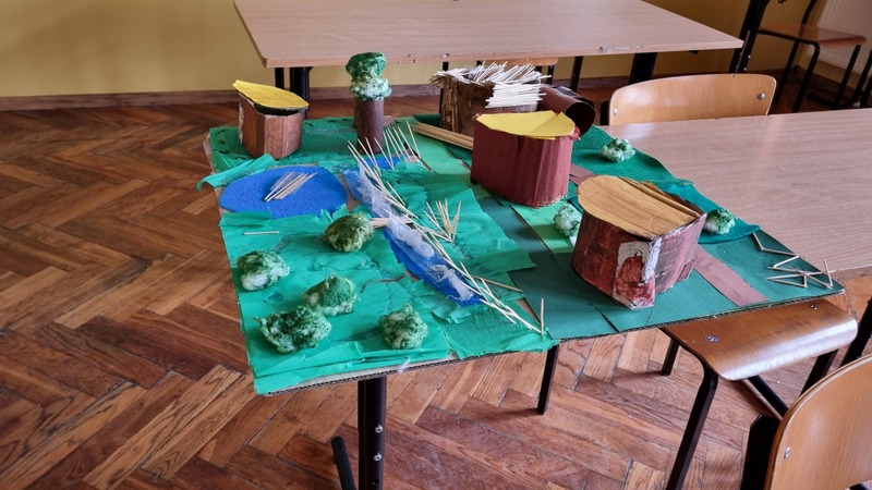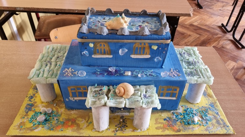 Uczniowie klasy IV z przyjemnością omawiali lekturę „Kajko i Kokosz. Szkoła latania” a klasa V mit „Królestwo morza” J. Parandowskiego. Zwieńczeniem prac nad tekstami było wykonanie makiet Mirmiłowa i pałacu Posejdona.