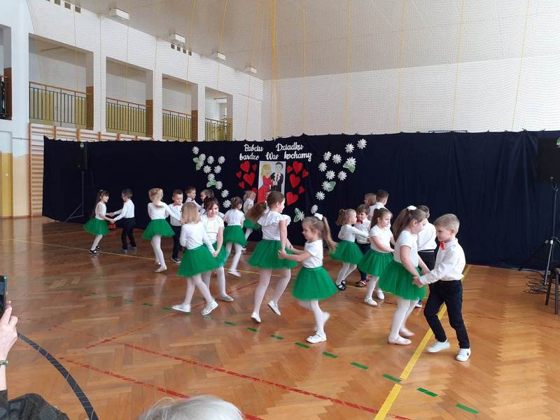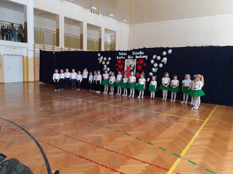 Wszystkim słowa BABCIA i DZIADEK kojarzą się z czymś dobrym i nasuwają piękne wspomnienia. Dlatego 3 lutego dzieci z zerówki gościły swoje Babcie oraz Dziadków na uroczystości z tej okazji. Uczniowie zaprezentowali wiersze, piosenki oraz taniec. Po występie artystycznym na naszych gości czekał słodki poczęstunek przygotowany przez rodziców. Radosne twarze babć i dziadków dały wyraz tego, jak ważne są dla nich wnuki.