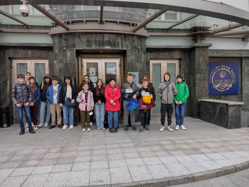4 kwietnia 2023 r. uczniowie klas VI–VIII wyjechali do Rzeszowa, aby wziąć udział w „lekcji bankowej” zorganizowanej przez oddział okręgowy Narodowego Banku Polskiego. Program obejmował spotkanie z przedstawicielką NBP, która przedstawiła uczniom historię i zasady funkcjonowania placówki, opowiedziała o polskiej walucie i jej zmianach na przestrzeni lat i sposobach zabezpieczania przed fałszerstwami. Niestety, tylko wirtualnie uczestnicy lekcji mogli zwiedzić skarbiec i zobaczyć sztabki złota. Uczniowie w sposób praktyczny sprawdzali zabezpieczenia polskich banknotów i odczytywali podstawowe informacje zawarte na nominałach, a następnie obejrzeli wystawę zabytkowych maszyn liczących i wystawy numizmatyczne. Dodatkową atrakcją były historyczne urządzenia do liczenia monet. Dużym zainteresowaniem cieszyły się też worki ze ścinkami uszkodzonych pieniędzy o ogromnych wartościach. W sali operacyjnej uczestnicy wycieczki mogli zamienić swoje monety w automacie liczącym ich wartość, więc trochę „lżejsi” mogliśmy wrócić do szkoły. Dziękujemy pracownikom banku za gościnność i władzom Gminy Dynów za zapewnienie darmowego transportu.