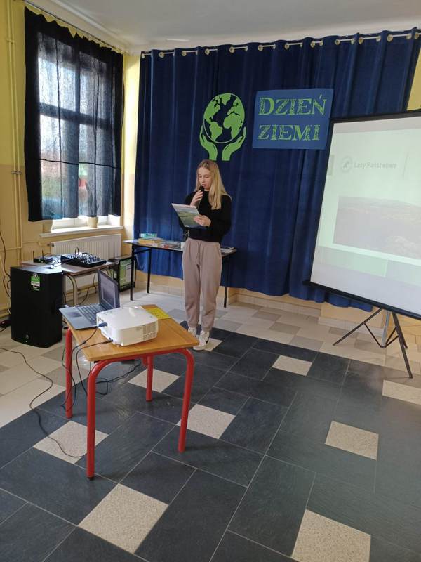 W poniedziałek, 24 kwietnia br. obchodziliśmy w naszej szkole Międzynarodowy Dzień Ziemi. Tego dnia, ludzie na całym świecie jednoczą się w swoich działaniach i staraniach, aby poprawić stan czystości naszej błękitnej planety i niwelować skutki bardzo szkodliwych działań, które mają miejsce każdego dnia. Z tej okazji naszą szkołę odwiedziła przedstawicielka Nadleśnictwa Dynów Pani Małgorzata Kopczak, która rozmawiała z uczniami o tym, jak należy dbać o naszą planetę, a także uświadomiła wszystkim zebranym jak ważne funkcje pełni las w przyrodzie.