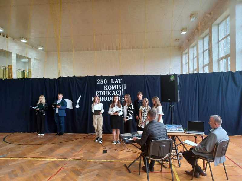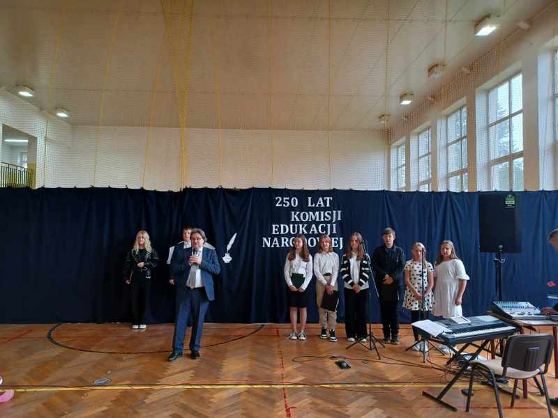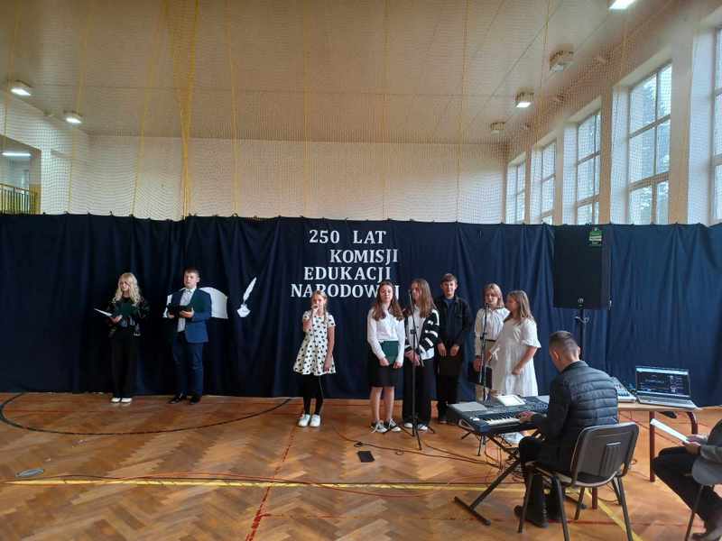 11 października w naszej szkole wspólnie świętowaliśmy 250. rocznicę istnienia i działalności Komisji Edukacji Narodowej. 14 pździernika 1773 roku, na wniosek króla Stanisława Augusta Poniatowskiego, sejm powołał ją do życia. Warto dodać, że była ona pierwszym ministerstwem oświaty publicznej w Polsce i pierwszą tego typu instytucją w Europie. Obecnie - na pamiątkę tego wielkiego wydarzenia - 14 października obchodzimy wspomniane wyżej święto. Z tej okazji cała społeczność szkoły wzięła udział w uroczystej akademii. W części oficjalnej głos zabrał Pan dyrektor Krzysztof Kędzierski, który złożył serdeczne życzenia wszystkim pracownikom szkoły, podziękował za trud wkładany w kształcenie i wychowanie młodych pokoleń Polaków. W części artystycznej uczniowie z klasy IV, VI, VII oraz VIII pod kierownictwem pana Rafała Bilskiego i Arkadiusza Banasia zaprezentowali piosenki i życzenia, wyrazili swoje podziękowanie i słowa uznania dla trudnej pracy pedagogów.