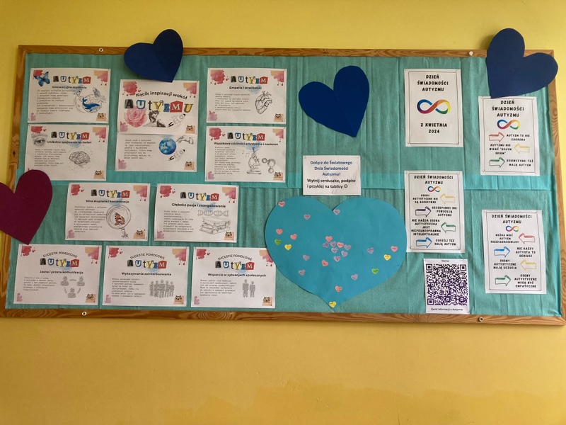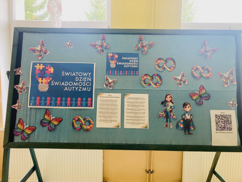 Każdego roku 2. kwietnia ludzie na całym świecie obchodzą Dzień Świadomości Autyzmu. Z tej okazji również w naszej szkole powstały tablice informacyjne oraz aktywności dla uczniów.