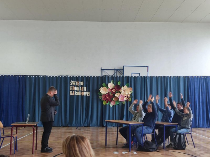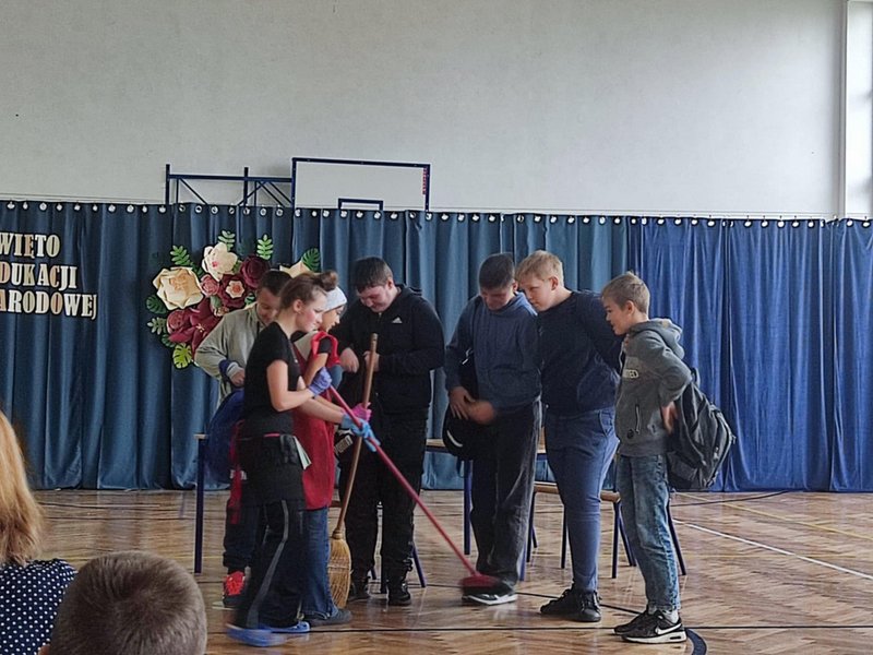 Część artystyczna przygotowana przez uczniów była jednym z najważniejszych punktów programu. Młodzież zaprezentowała krótkie scenki humorystyczne, które w zabawny sposób ukazywały codzienne życie szkolne, zarówno z perspektywy uczniów, jak i nauczycieli. Scenki te wzbudziły dużo śmiechu na sali, ale jednocześnie zawierały ciepłe przesłanie o wzajemnym szacunku i współpracy