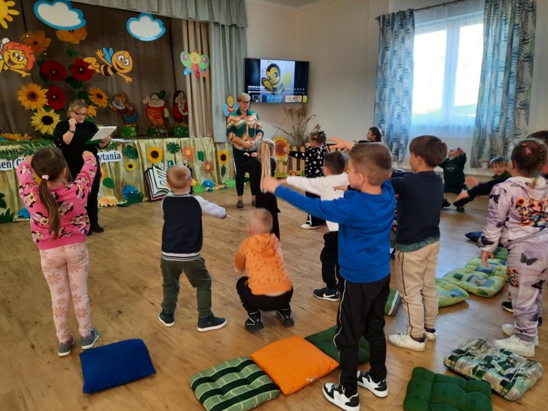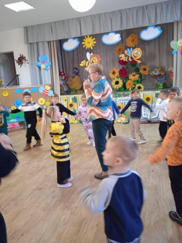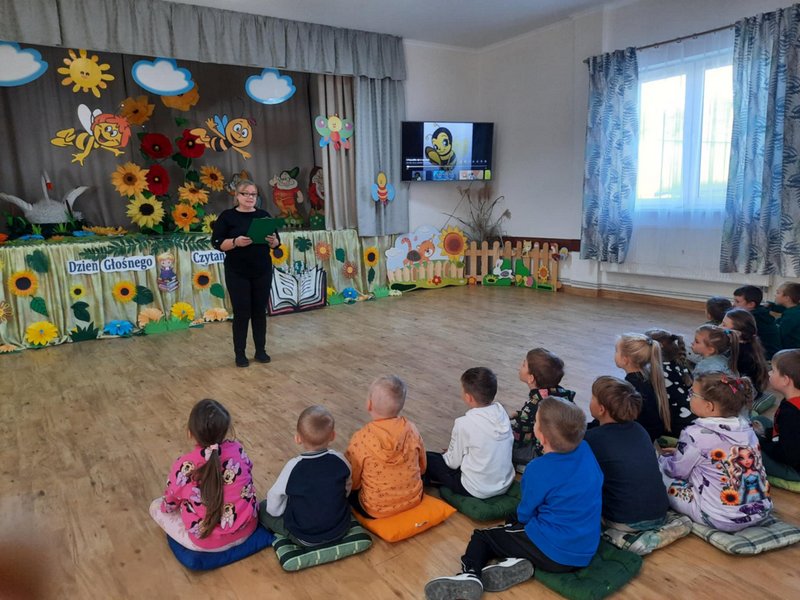 Ogólnopolski Dzień Głośnego Czytania był powodem odwiedzin w Publicznej Bibliotece w Łubnie. W dniu 18 października dzieci z zerówki spotkały się z Paniami pracującymi w tej placówce. Pierwsze przedszkolaki dowiedziały się na czym polega praca bibliotekarza, jaki ma zakres obowiązków oraz jakie książki znajdują się w tutejszej bibliotece i niektóre z nich obejrzały. Kolejnym etapem wizyty było spotkanie z pszczółką Mają, która zaprosiła dzieci na swoją baśniową łąkę i zaprezentowała niektóre ze swoich przygód. Po wysłuchaniu opowieści o Mai i jej przyjaciołach dzieci wzięły udział w quizie dotyczącym ulubionej pszczółki. Wszyscy udzielili poprawnych odpowiedzi, dzięki czemu otrzymali niezwykłą nagrodę – niespodziankę. Panie Bibliotekarki sprawiły, że przedszkolaki weszły w role pszczółek i zaprosiły je do wspólnej zabawy na bajkowej łące. Podsumowaniem tej pożytecznej akcji było obejrzenie filmu edukacyjnego o życiu pszczół a także wręczenie uczestnikom pamiątkowych medali. Serdecznie dziękujemy Paniom za przygotowanie tego inspirującego przedsięwzięcia propagującego czytanie książek.