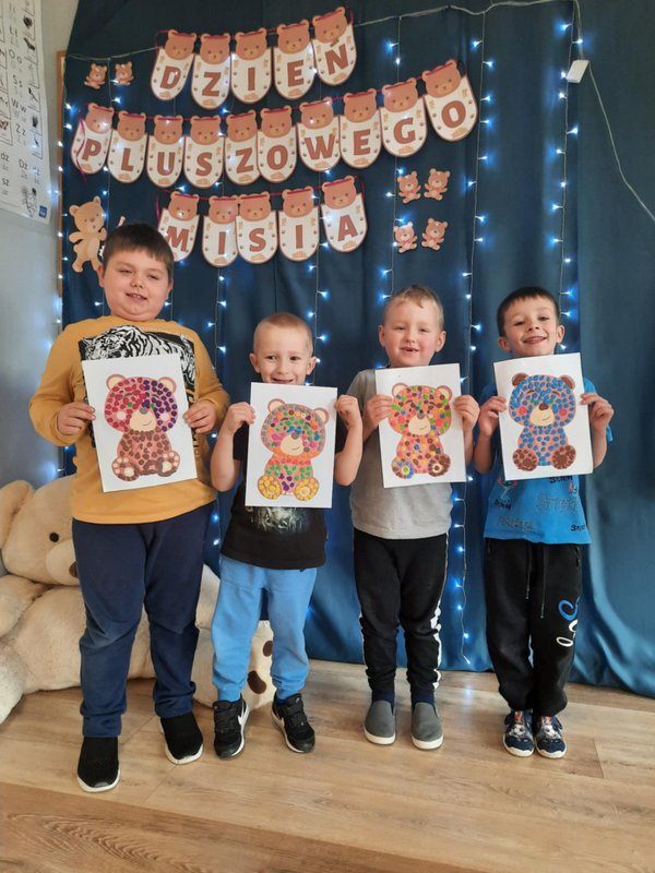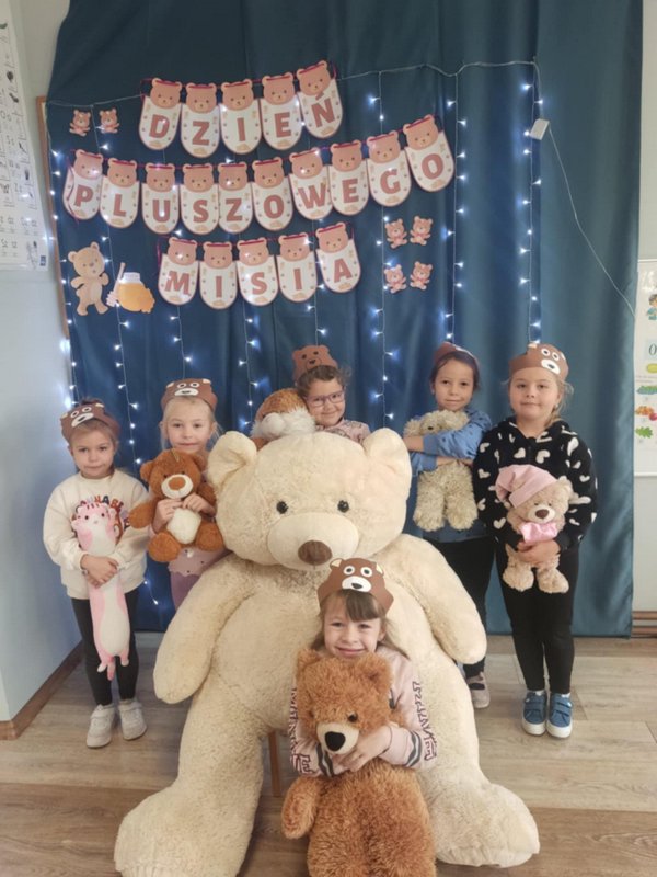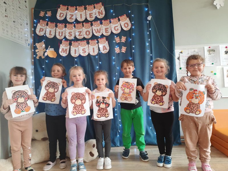 25 listopada przedszkolaki obchodziły „Światowy Dzień Pluszowego Misia”. Każde dziecko przyszło do przedszkola ze swoim „milutkim przyjacielem”. Można było zobaczyć misie małe, średnie, duże, brązowe, białe. Wszystkie były śliczne i wyjątkowe. Dzieci poznały historię pluszowego misia. Uczestniczyły w zabawach ruchowych i konkursach. Podsumowaniem dnia były przepiękne prace