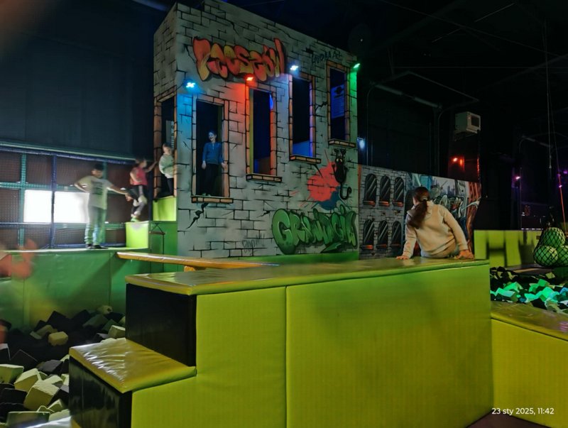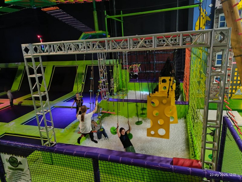 Następnie uczniowie udali się do parku trampolin Grawitacja, gdzie mogli w pełni rozładować energię. Aktywność fizyczna na trampolinach, pokonywanie przeszkód, a także zabawy grupowe sprawiły, że każdy znalazł coś dla siebie. Zabawa w tym miejscu nie tylko dostarczyła mnóstwa radości, ale również sprzyjała integracji uczestników. Uczniowie chętnie wspierali się nawzajem w różnych zadaniach, co jeszcze bardziej umocniło ich więzi.