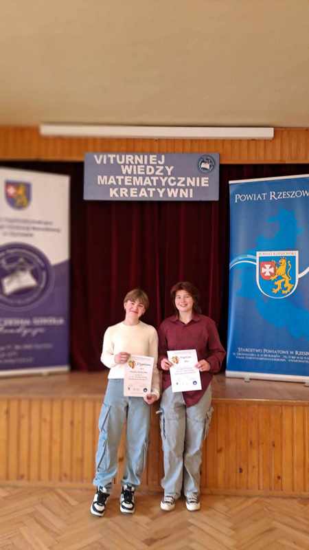 W dniu 12.03.2025r. w Liceum Ogólnokształcącym im. KEN w Dynowie odbył się VI Turniej Wiedzy ,,Matematycznie Kreatywni”, patronat honorowy nad konkursem objął Podkarpacki Kurator Oświaty i Starosta Rzeszowski. Naszą szkołę reprezentowały uczennice klasy VIII Amelia Kośmider i Milena Pankiewicz.