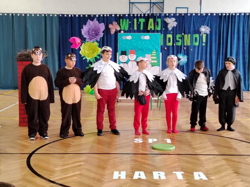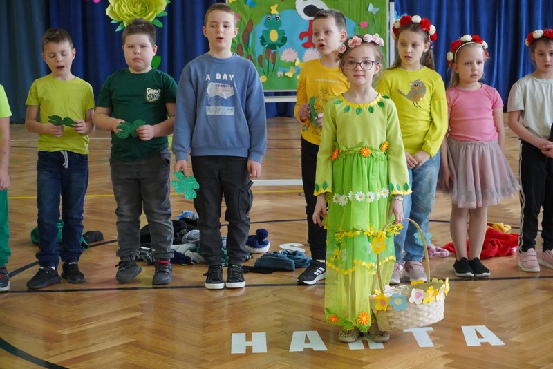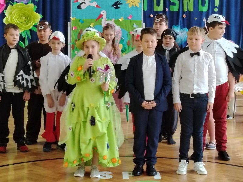 Dnia 27.03.2025r. w naszej szkole odbyło się pełne radości i wspólnego świętowania pożegnanie zimy i powitanie wiosny. Uroczystą akademię pod tytułem: „Witaj wiosno” uświetniły występy uczniów klas: pierwszej, drugiej i trzeciej oraz zaproszone koleżanki ze starszych klas. Były wiersze, inscenizacje, wiosenny walc oraz mnóstwo piosenek. Sala wręcz zakwitła kolorową dekoracją. Wiosna powitana, więc czekamy na nią!