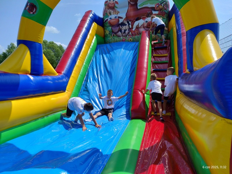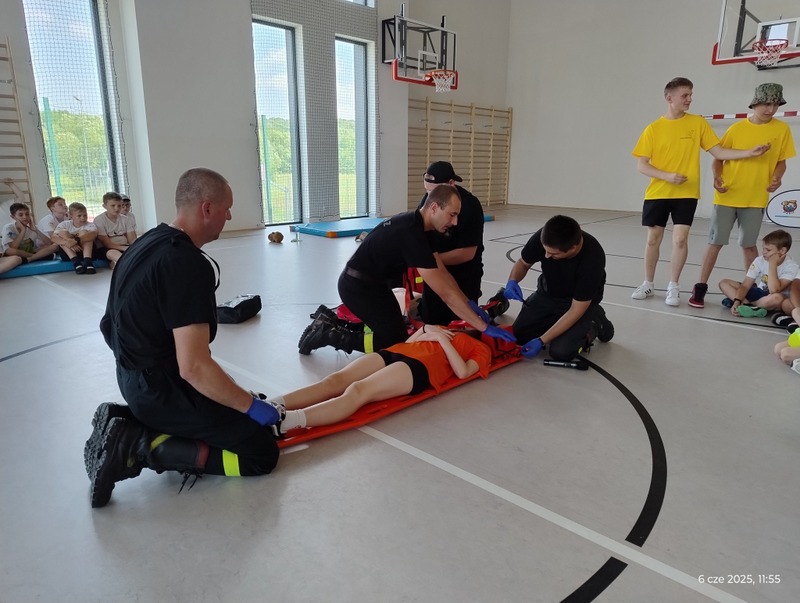 Po sportowych zmaganiach na uczestników czekały dodatkowe atrakcje – zabawy na dmuchańcach oraz pokaz udzielania pierwszej pomocy, który przeprowadzili wolontariusze oraz strażacy z Ochotniczej Straży Pożarnej w Woli Rafałowskiej. Dzieci miały okazję nie tylko zobaczyć profesjonalny pokaz, ale również aktywnie uczestniczyć i dowiedzieć się, jak pomagać w nagłych sytuacjach.